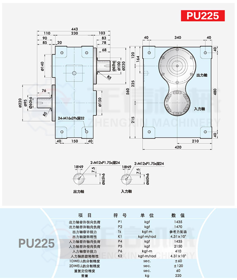 出力軸上的旋轉(zhuǎn)臺可用作自動旋轉(zhuǎn)機(jī)器的中心傳動力。